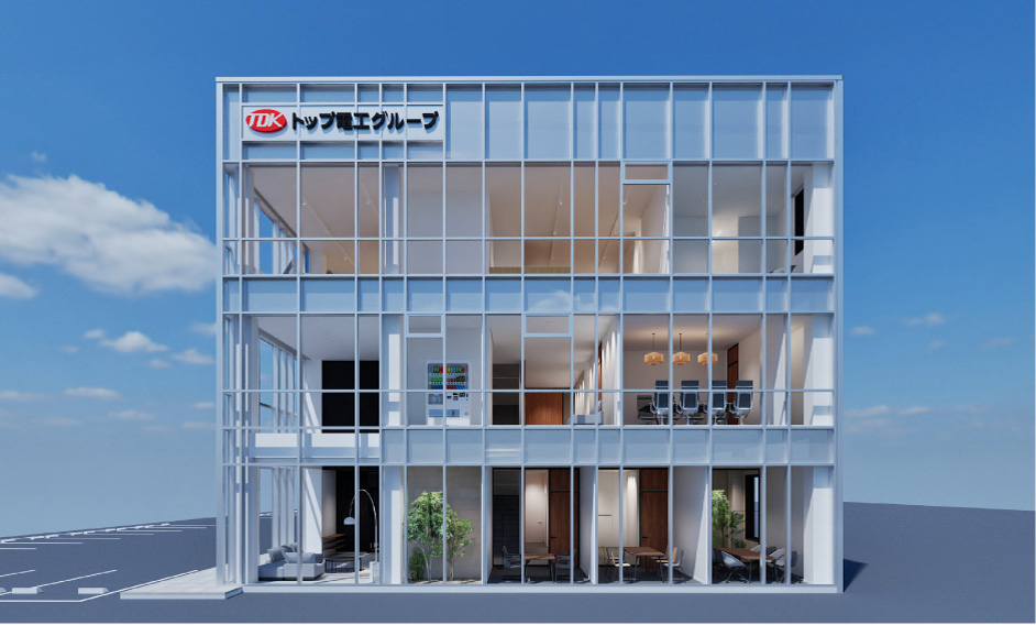 5月竣工(しゅんこう)の予定です。ここをベースに30年までに機械設備部門を立ち上げ、社員数150人、売り上げ30億円を想定し、総合設備業として成長する未来図があります。さらに拠点を増やし、40年には社員数270人、売り上げ50億円まで伸ばす計画もあります。次世代のトップを走る電気工事会社になる、という思いで命名した会社です。必ず実現したいと思います。