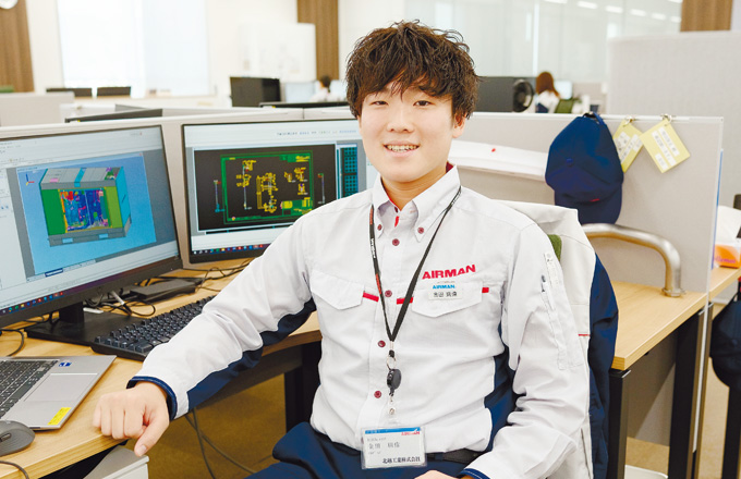 金田 琉偉 阿賀野市出身。秋田県立大学大学院システム科学技術研究科修了。入社1年目。エンジンコンプレッサの設計開発を行う。趣味はバドミントンとサウナ。