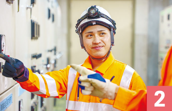 高速道路上にある受配電設備や照明設備の日常点検、設備故障時の復旧対応等を行っています。