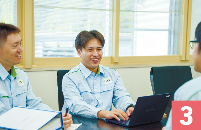 事務所に戻り、上司や同僚と点検結果の共有をします。